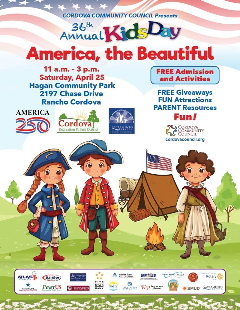Kids Day is a festival geared to families of young children. A fun day of activities for kids and their families, it is also a health and resources fair with providers on hand to share information. The target group is children 12 and younger and their parents. Kids Day has been a favorite Rancho Cordova special event for more than three decades. This year, we are celebrating the 250th Anniversary of the founding of the country, focusing on the beauty around us with “America, the Beautiful.”